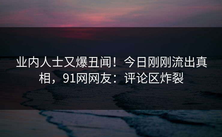 近日,业界发生了一起让人震惊的丑闻,业内人士的爆料终于揭开了背后的惊天黑幕。事件的真相通过一位业内知情人士的爆料,在网络上迅速传播开来,引起了广泛关注。而这一消息的曝光,尤其是在91网引发的热议,使得网友们的讨论也愈发激烈。该事件一经曝光,不仅震动了业内,也让公众对整个行业的信任度产生了严重质疑。